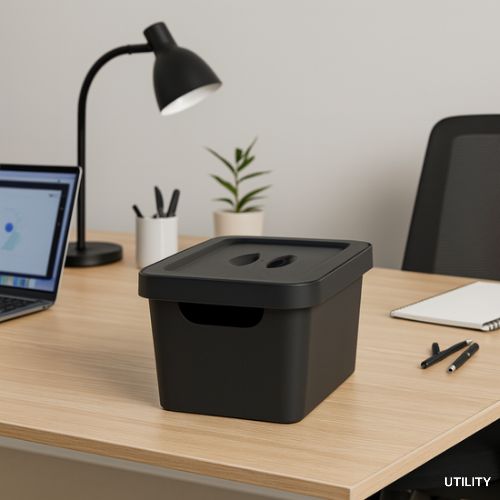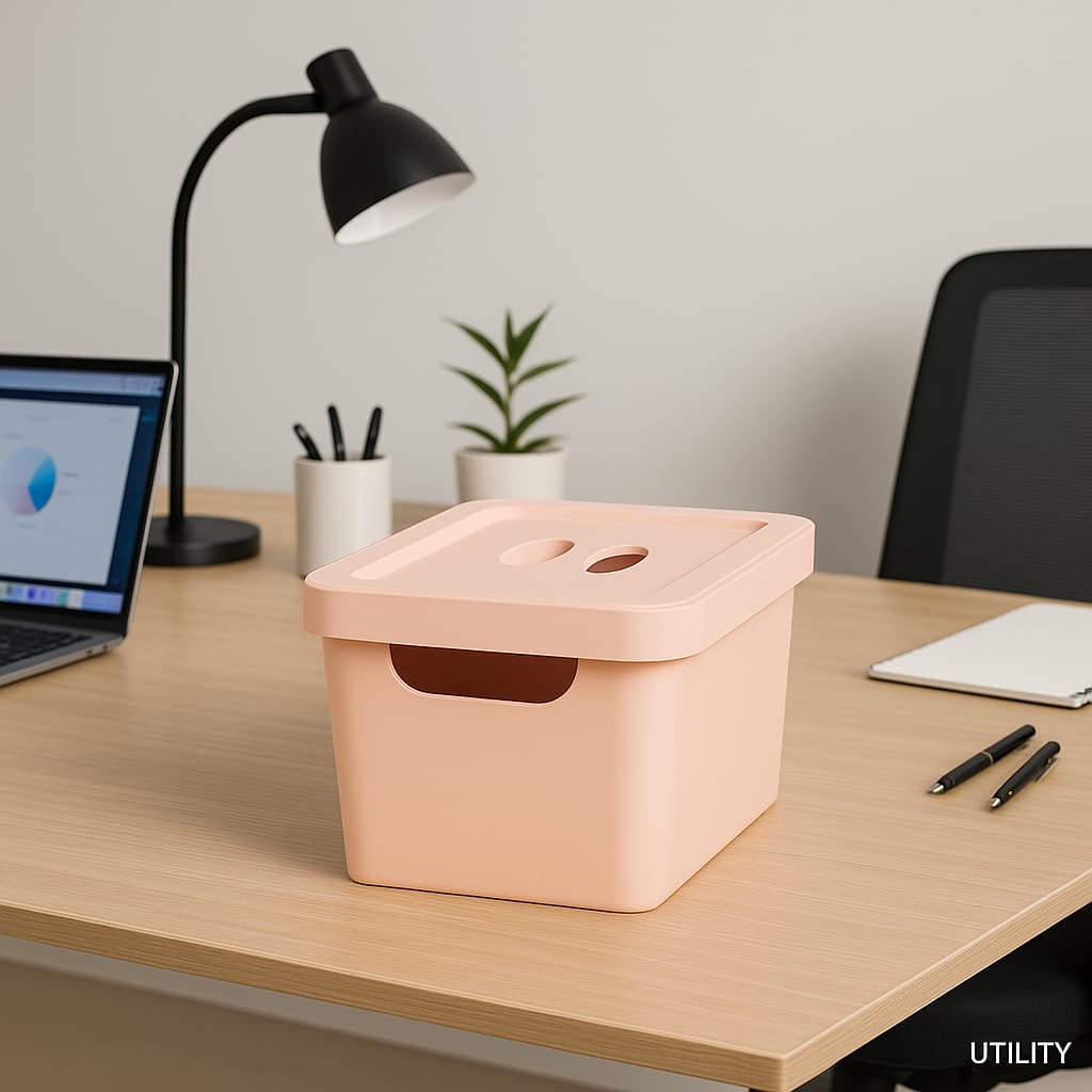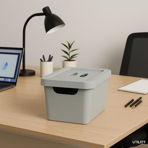 Organização compacta com design premium. 3 litros, tampa firme com pegadores e acabamento fosco.