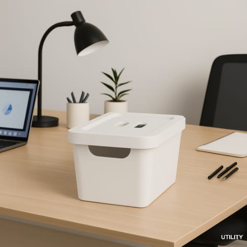 Empilhável e com abertura frontal ergonômica, ideal para guardar documentos, cabos e acessórios no escritório, closet ou lavanderia.