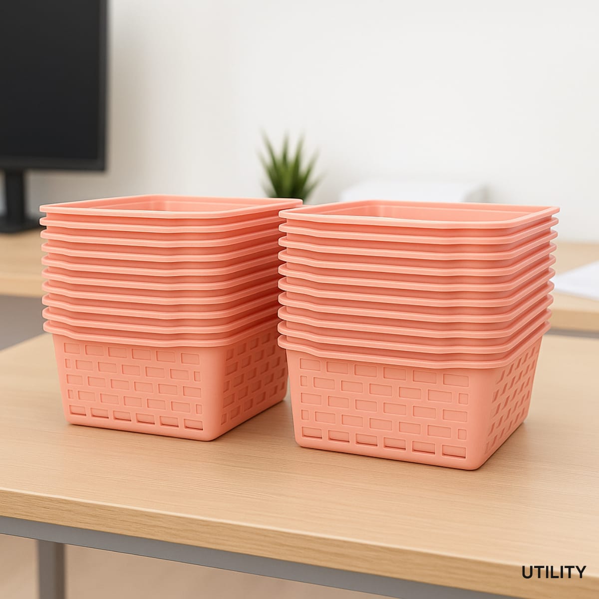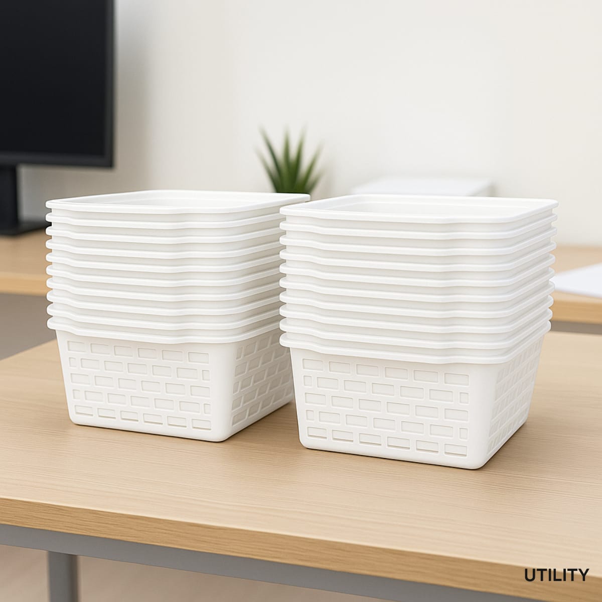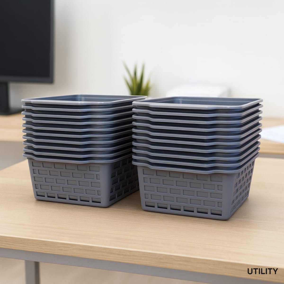 Com design vazado e acabamento fosco, as cestas permitem ventilação natural e facilitam a visualização dos itens armazenados.