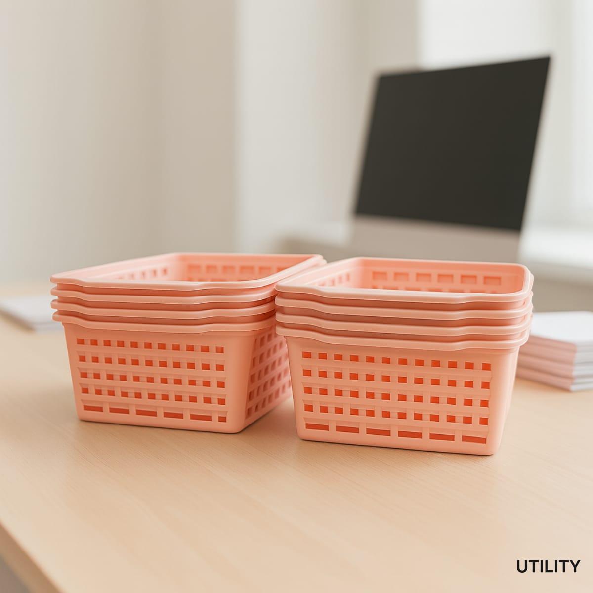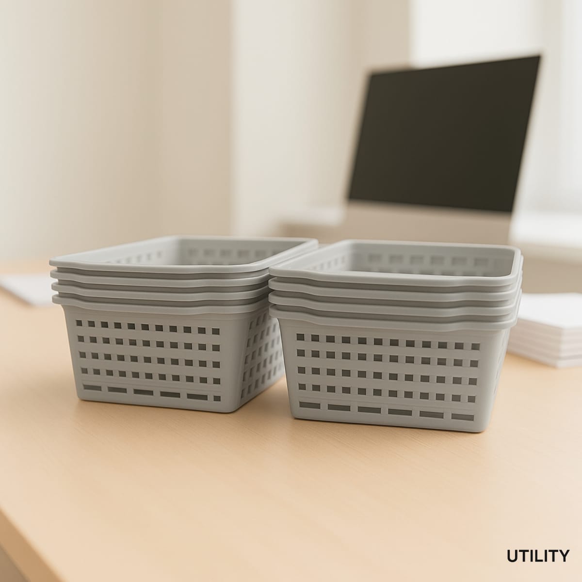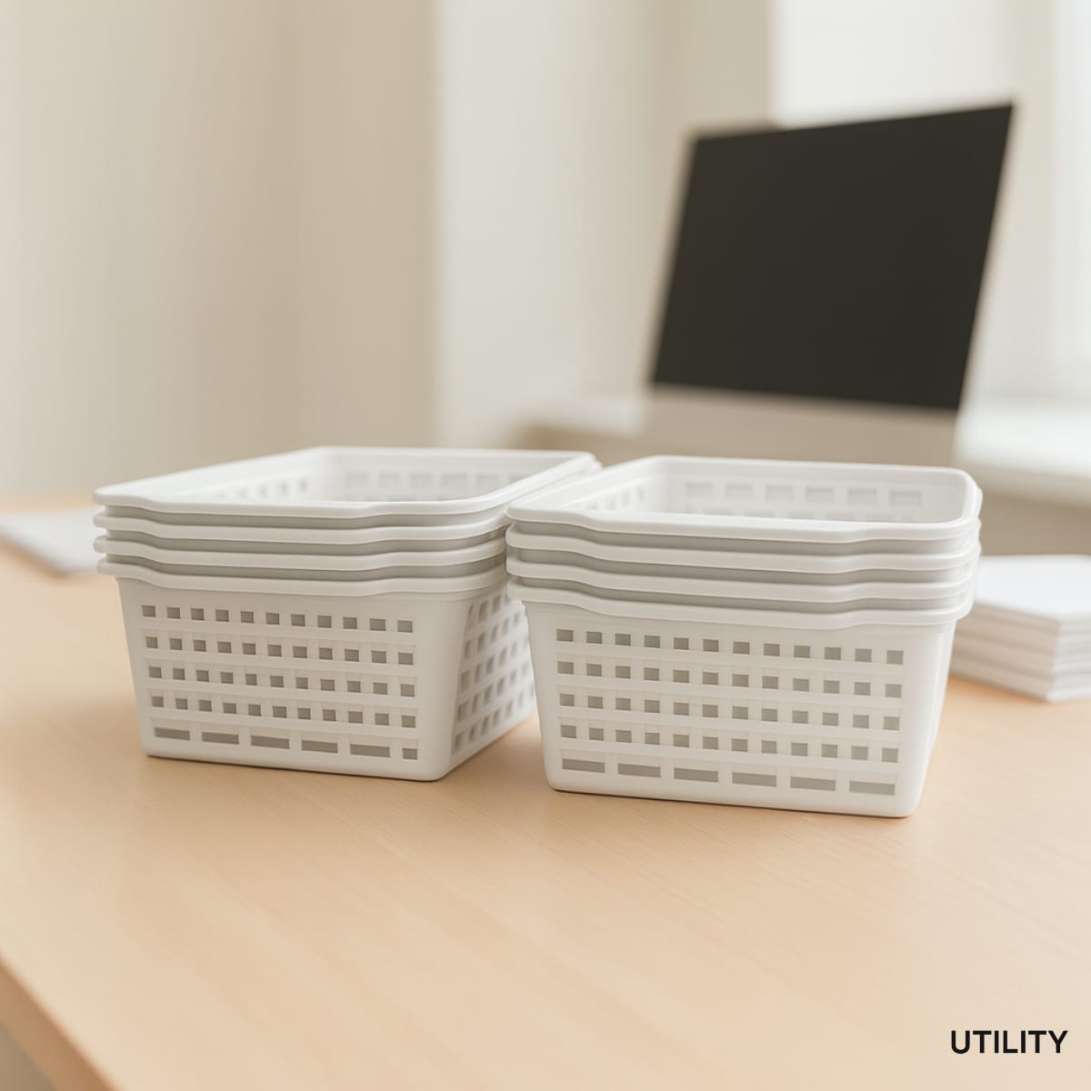 Com design vazado e acabamento fosco, as cestas permitem ventilação natural e facilitam a visualização dos itens armazenados.
