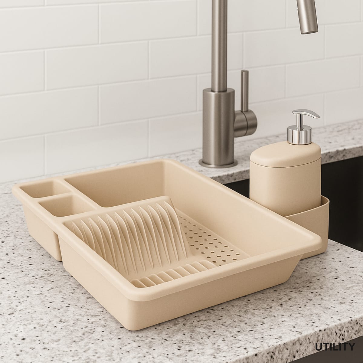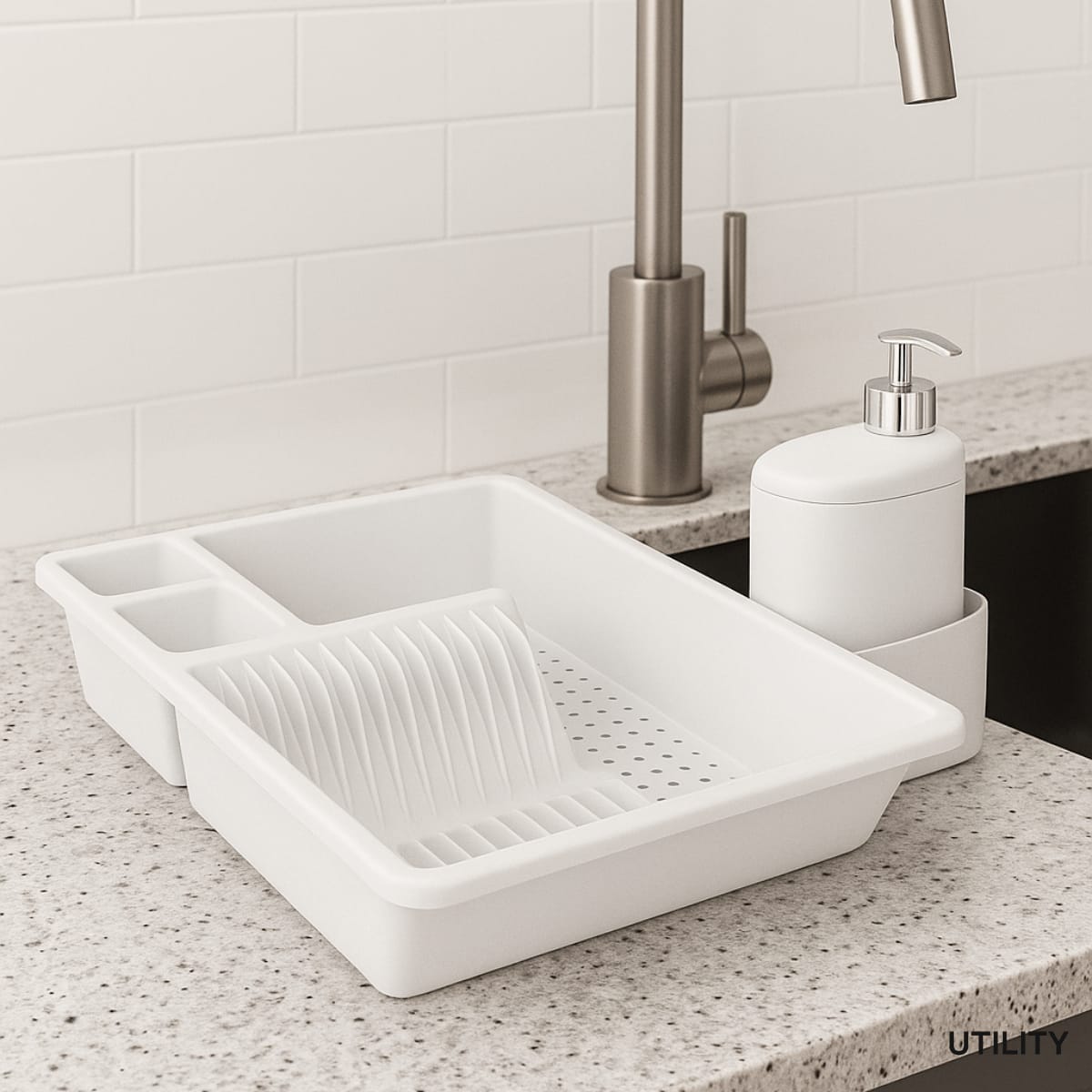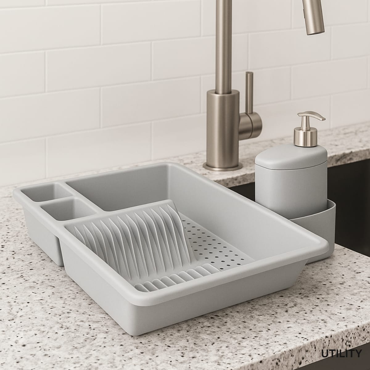 Deixe sua cozinha mais organizada e elegante com o Kit Escorredor de Louça + Dispenser Full Utility.