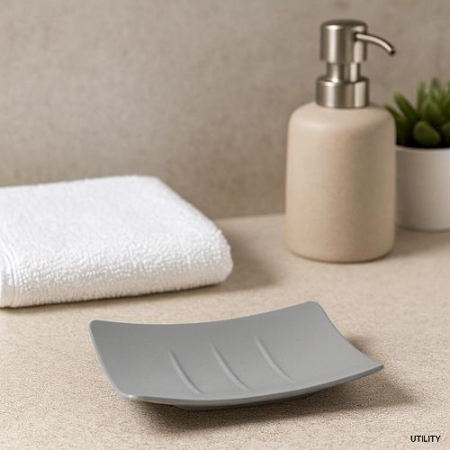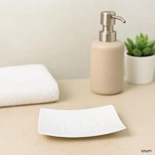 Design minimalista e funcional: canaletas que escoam a água para manter o sabonete seco por mais tempo.