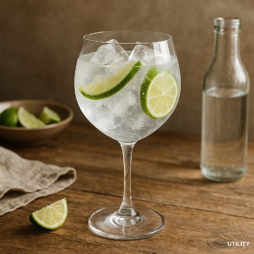 Taça de cristal com bojo amplo, ideal para Gin Fizz e drinks com bastante gelo e guarnições. Transparência impecável para valorizar cores e aromas.